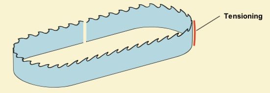 Band saw blades are considered problematic as they are far more fragile than similar machining tools such as circular saw blades, gang saw blades or milling cutters, and simply break off if incorrectly handled.